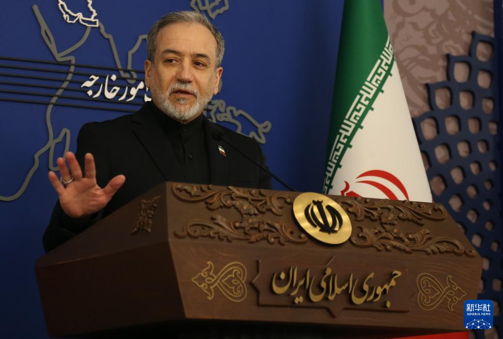 3月16日,伊朗外交部长阿拉格齐在首都德黑兰出席伊朗外交部举行的每周例行记者会。新华社记者 沙达提 摄